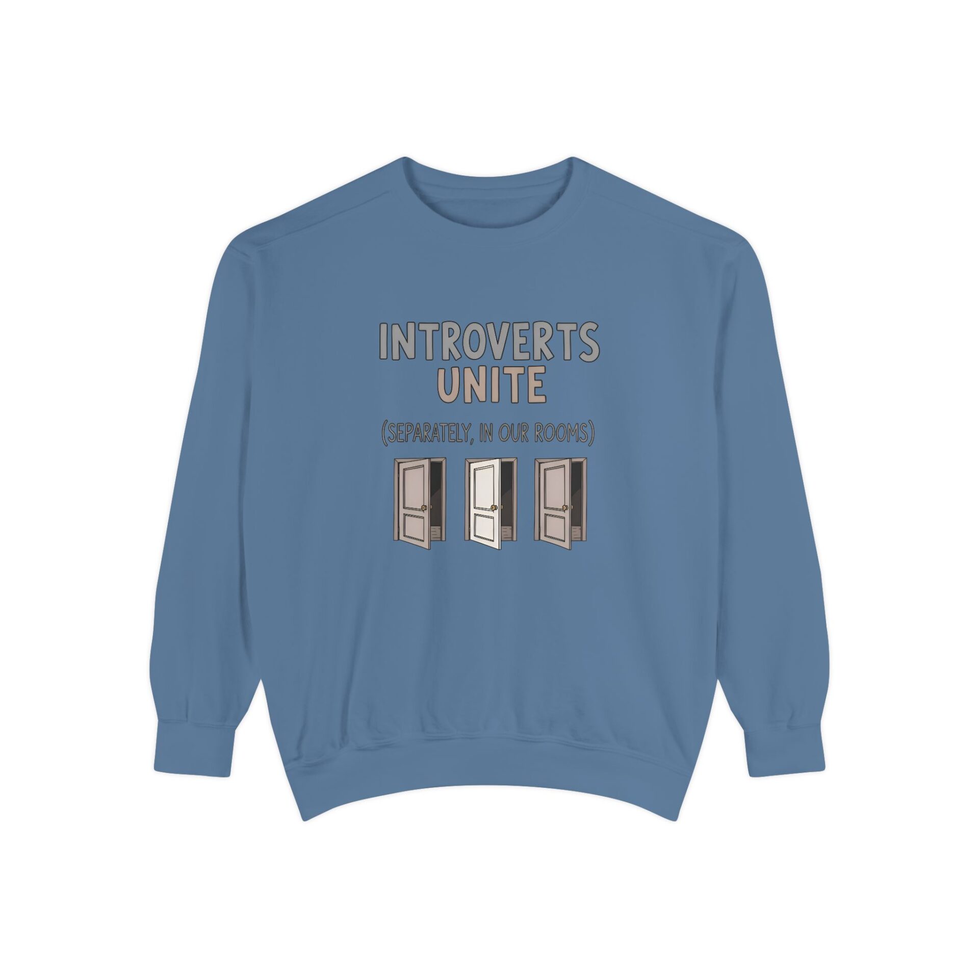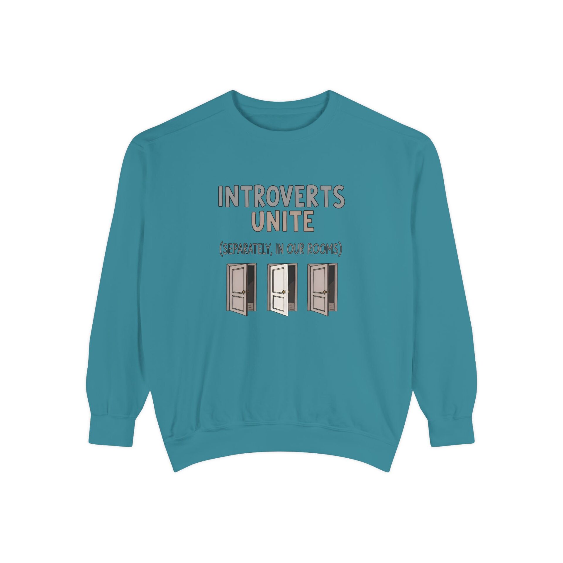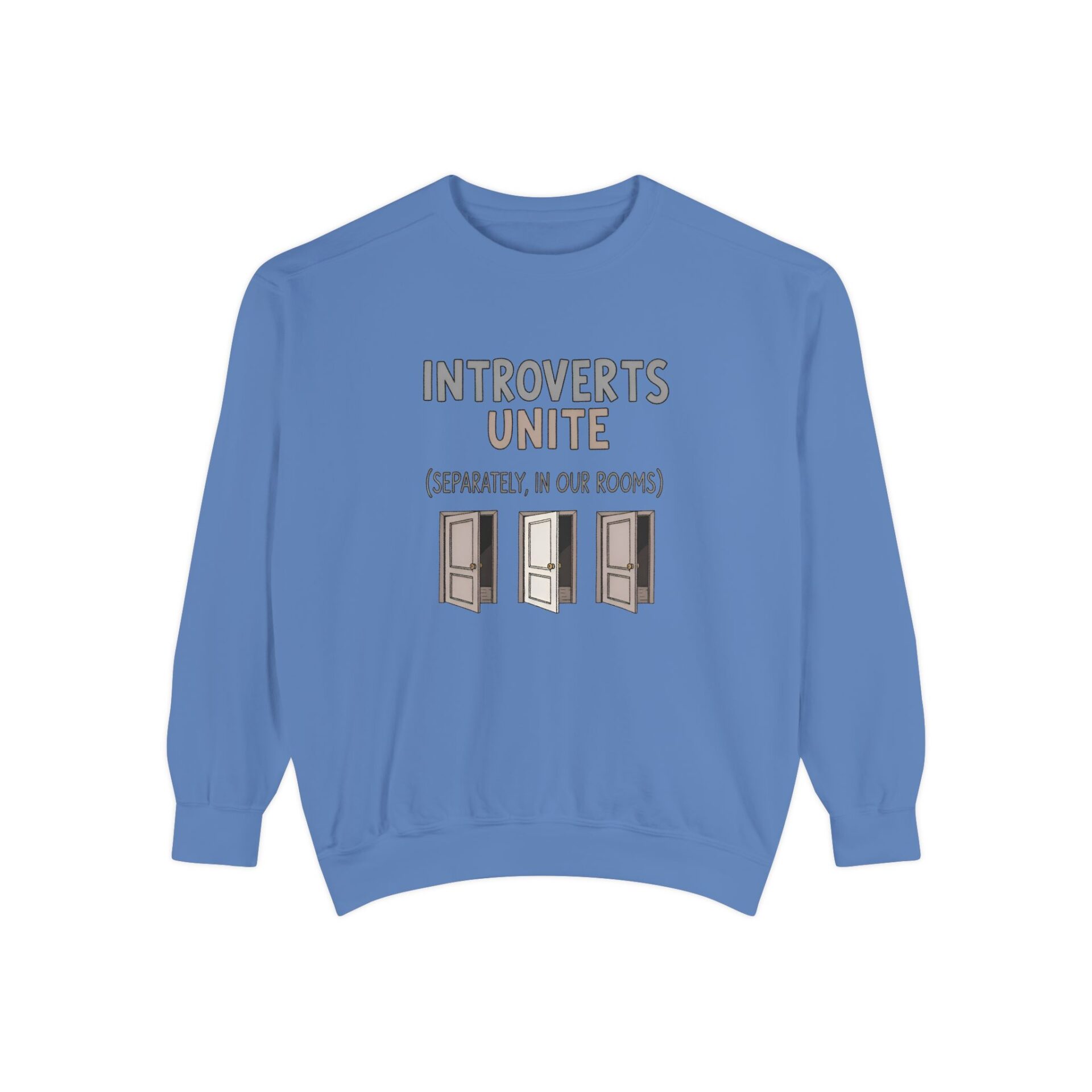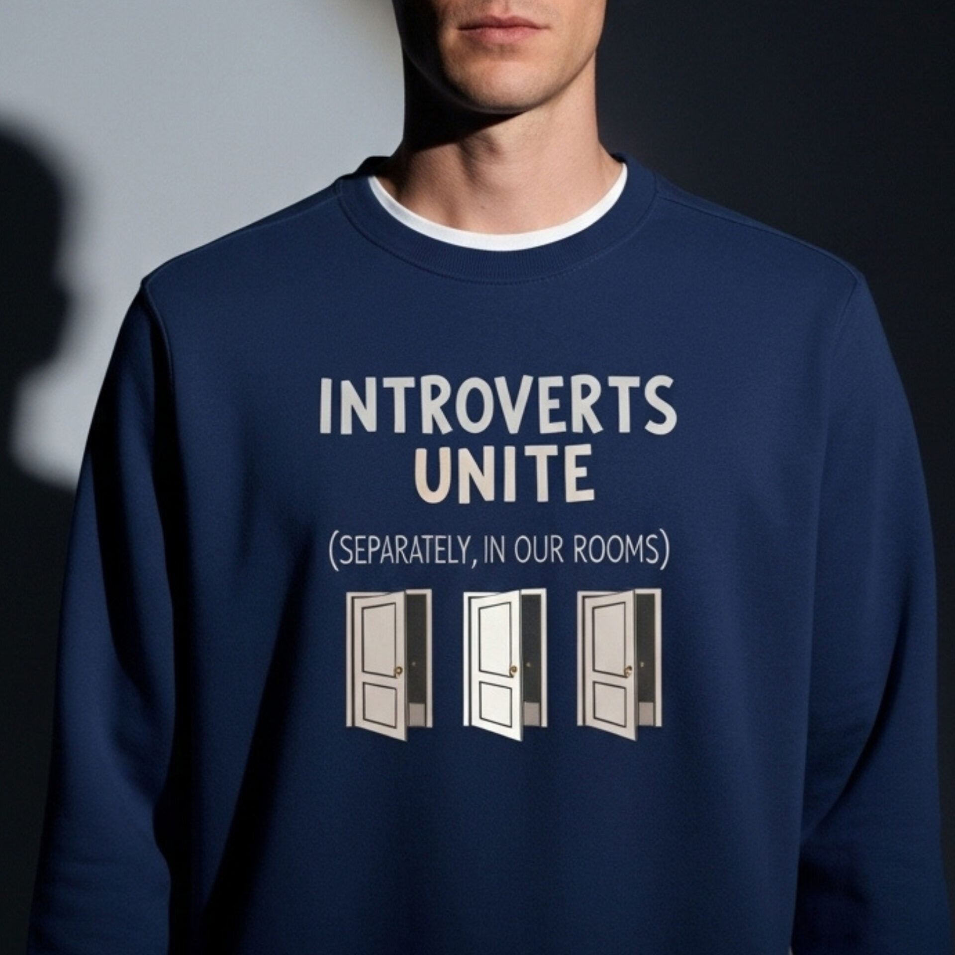 We wanted to create a sweatshirt that captures that same witty spirit while giving introverts a sense of community — even if that community is thriving quietly behind closed doors.