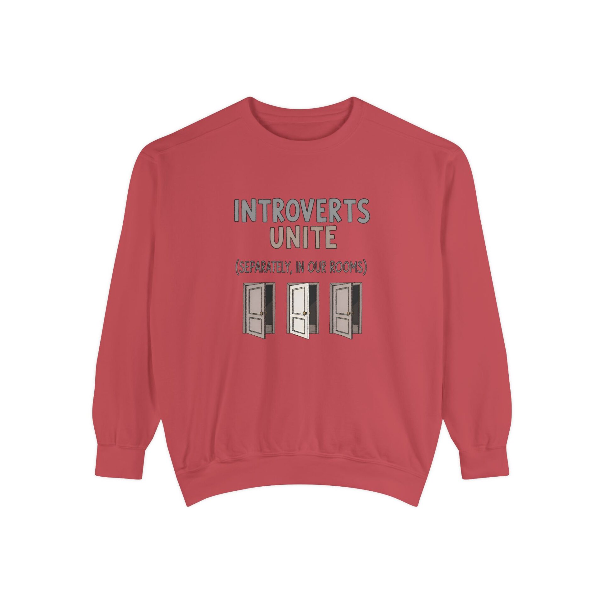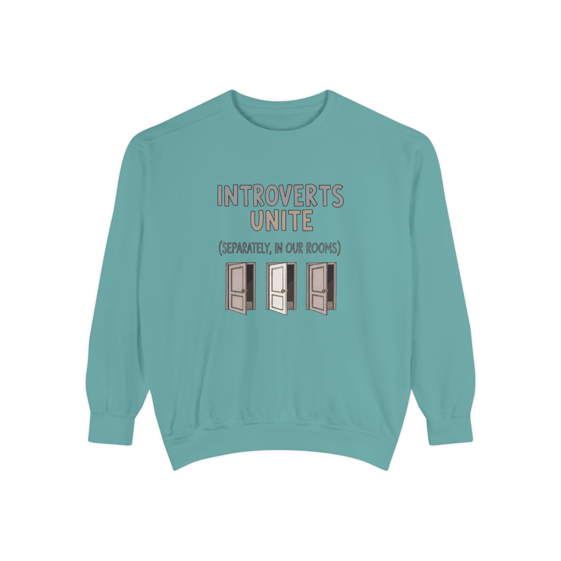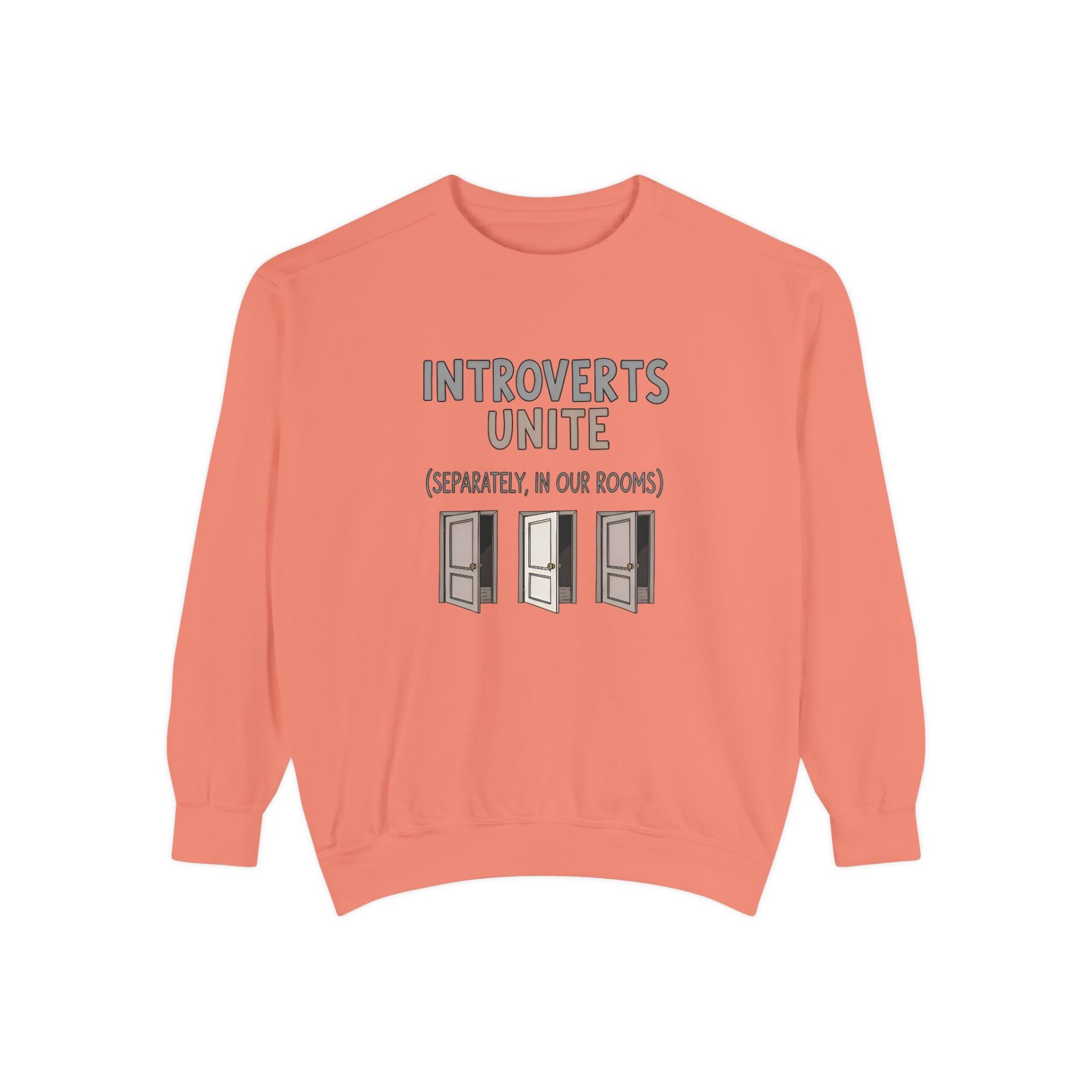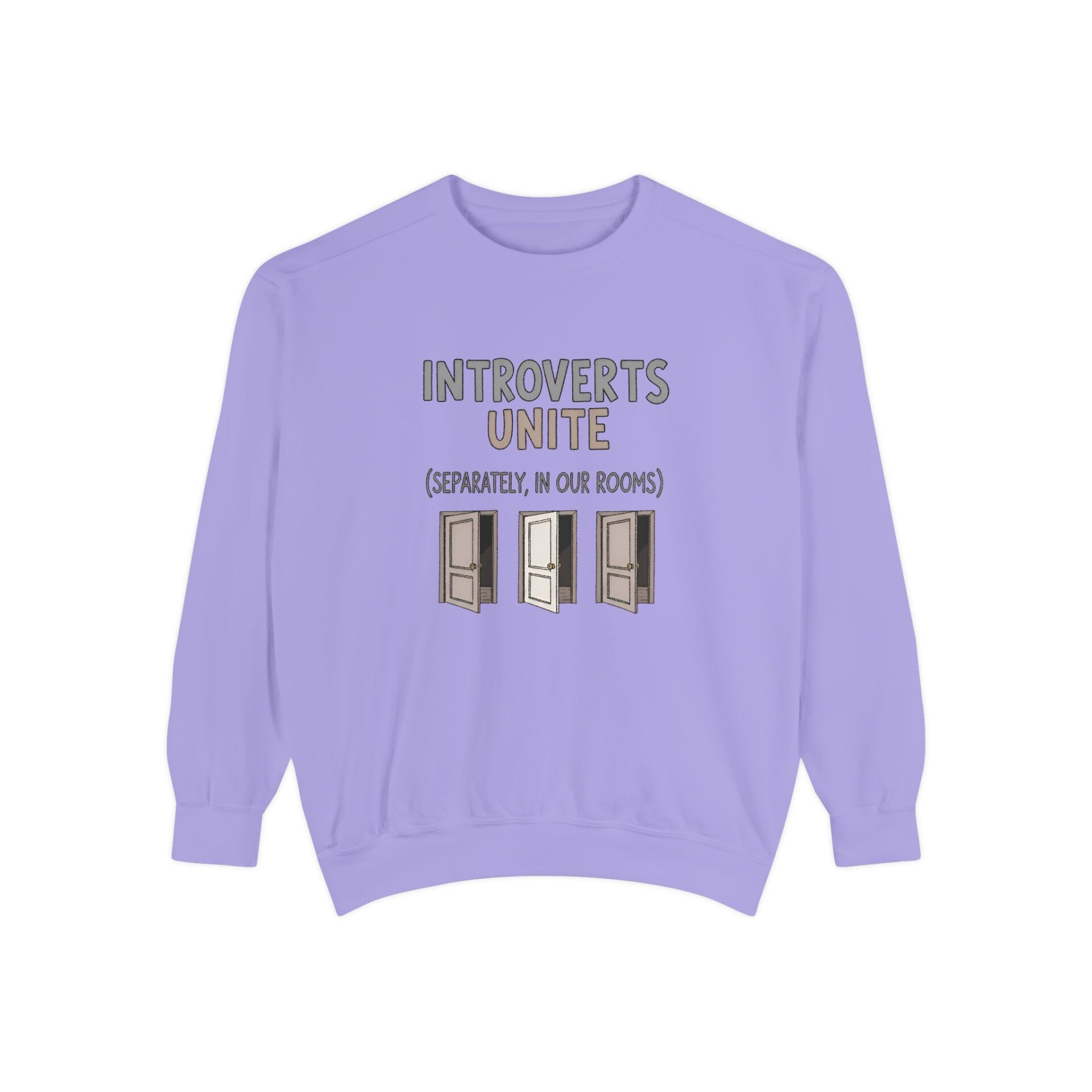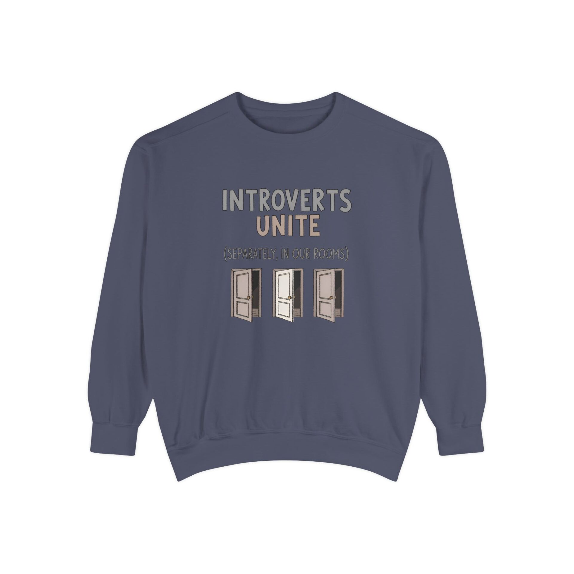 We wanted to create a sweatshirt that captures that same witty spirit while giving introverts a sense of community — even if that community is thriving quietly behind closed doors.