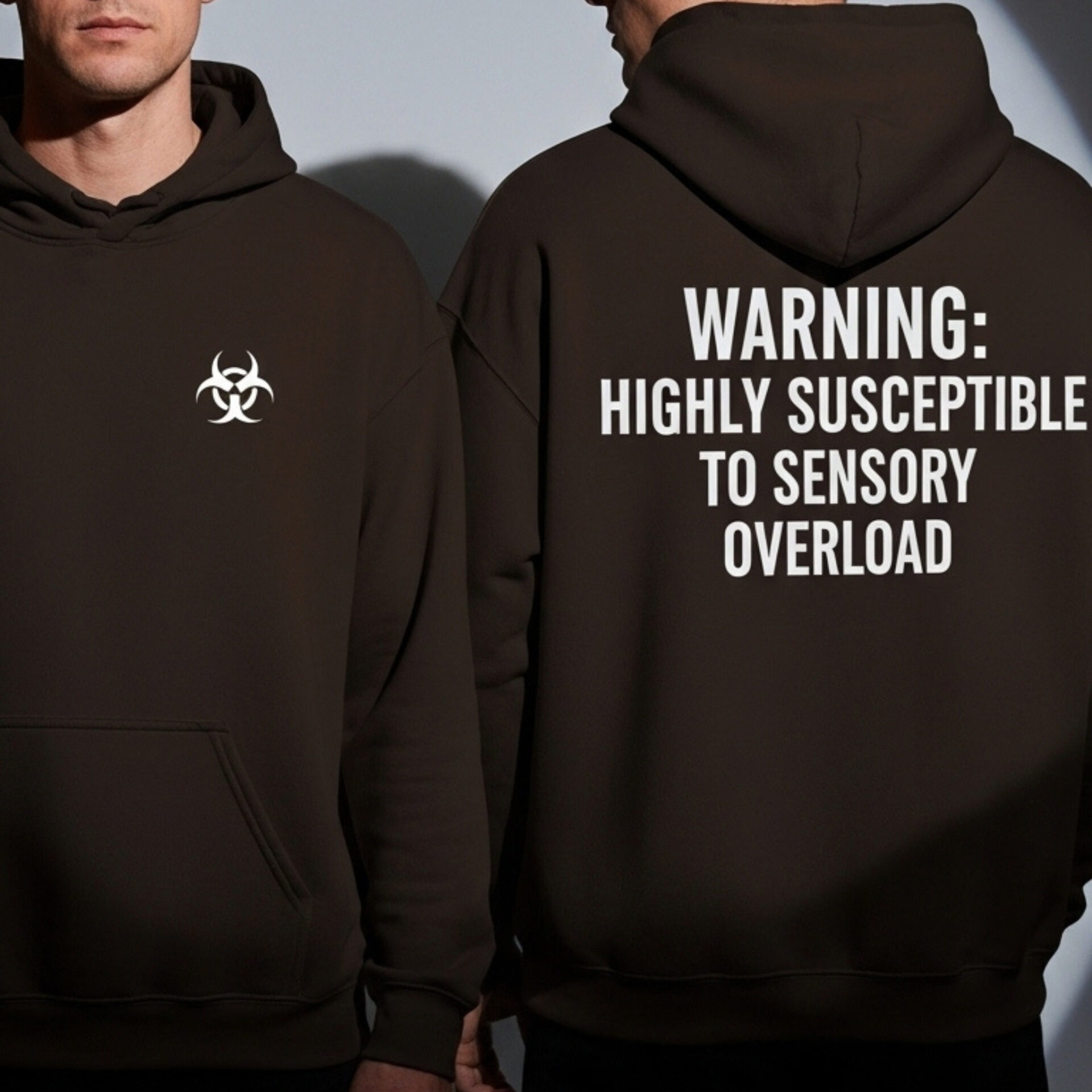 The Warning: Highly Susceptible to Sensory Overload Hoodie was born out of that need — a way to communicate, educate, and advocate without saying a word. It’s more than comfort. It’s a gentle shield.